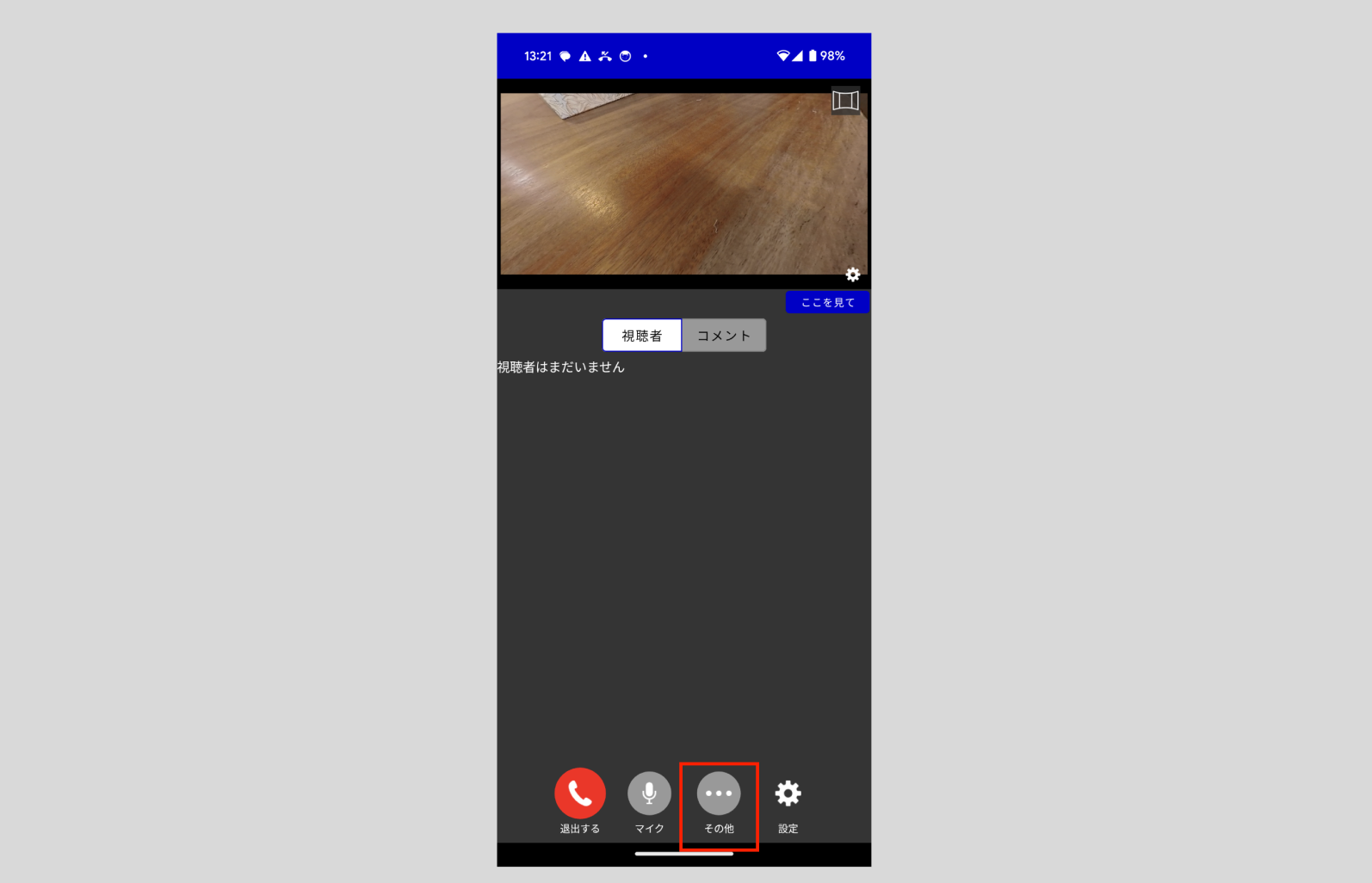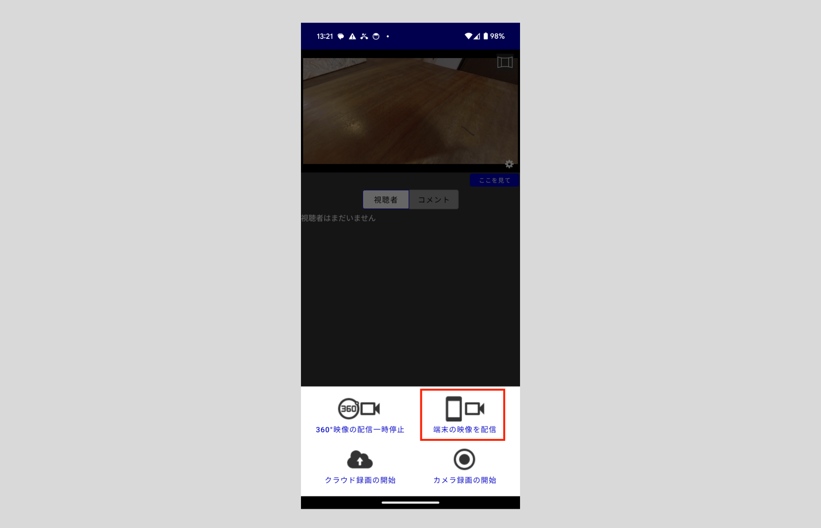 [端末の映像を配信]ボタンを押して配信開始(もう一度押すと配信終了)