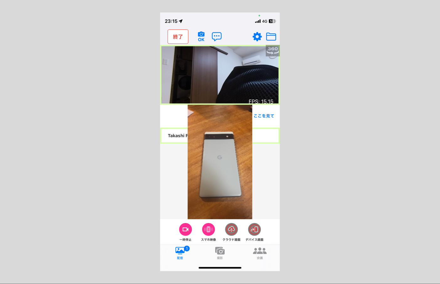 - 360度映像の配信と同時に、スマートフォンの映像の配信できる機能です。