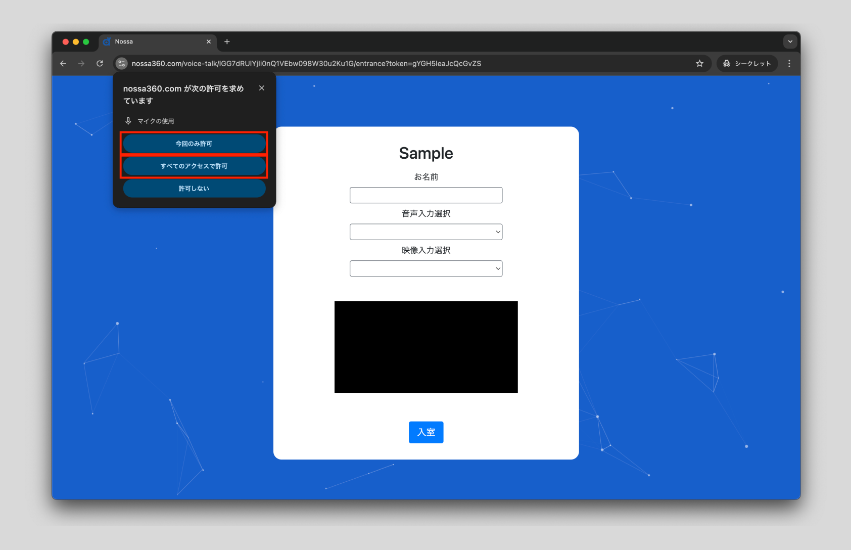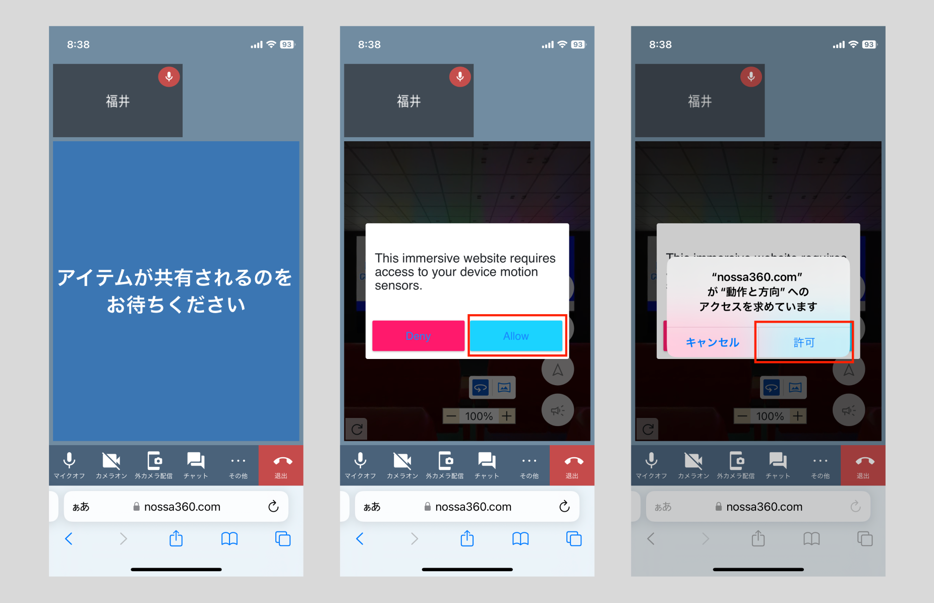 - 映像配信が開始されると、追加で許可を聞かれるので、[Allow]と「許可」を押す。