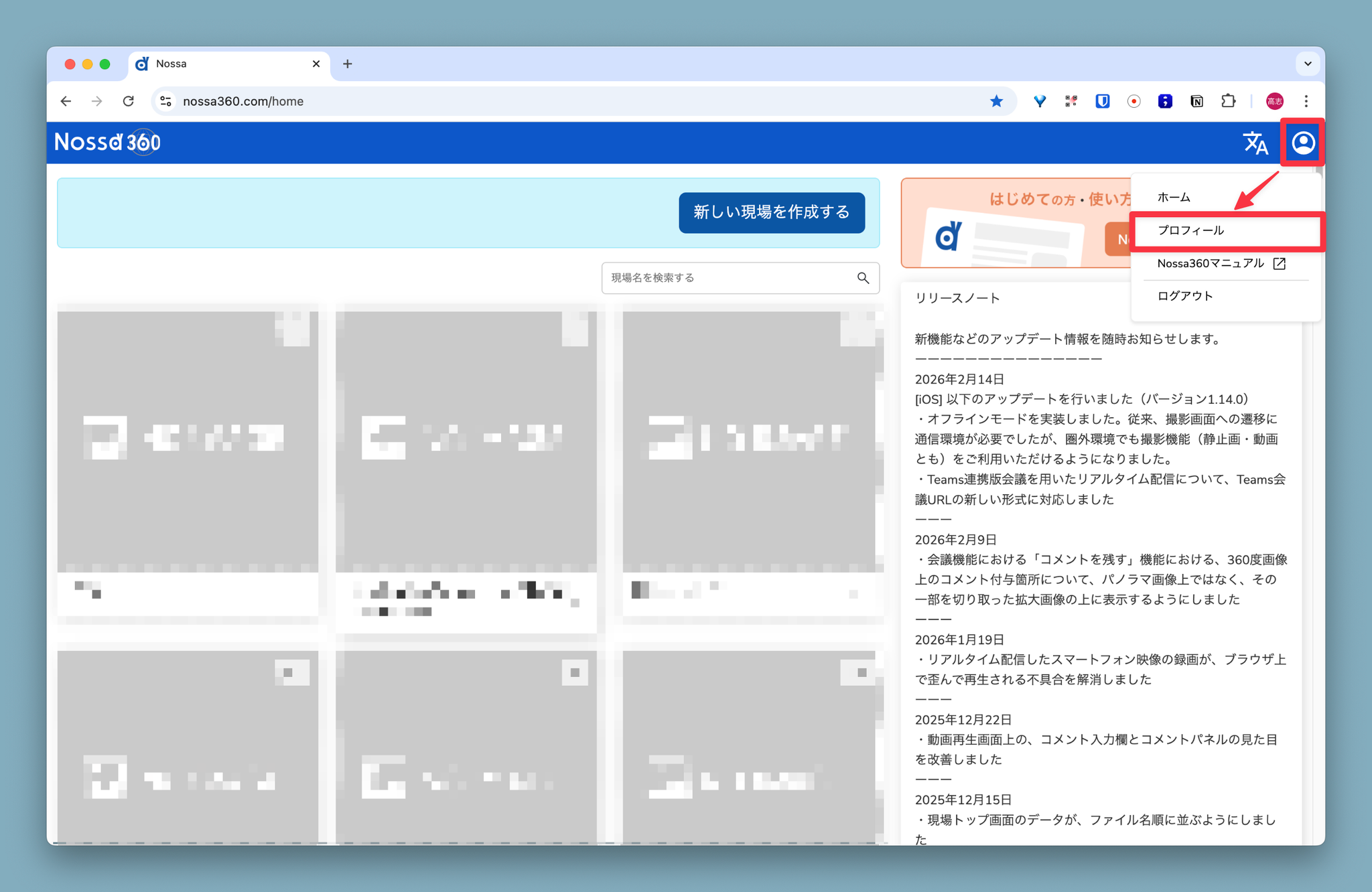 - 右上の人型アイコンを押し、表示される選択肢から[プロフィール]を選択する