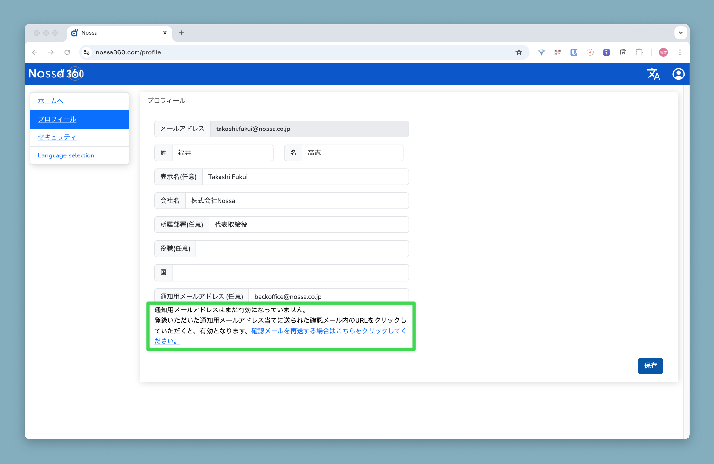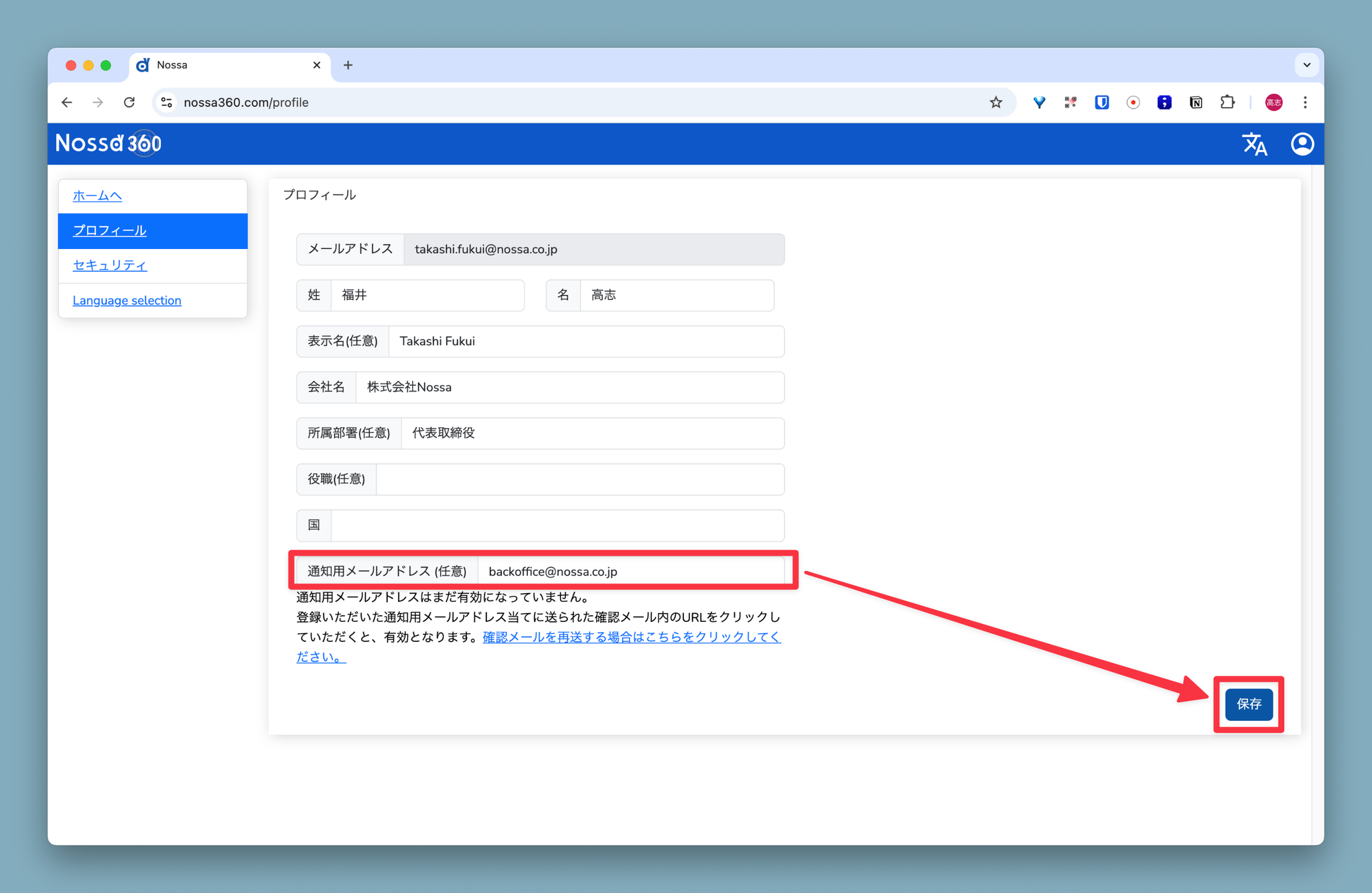 - 普段利用しているメールアドレス → support@nossa.co.jp