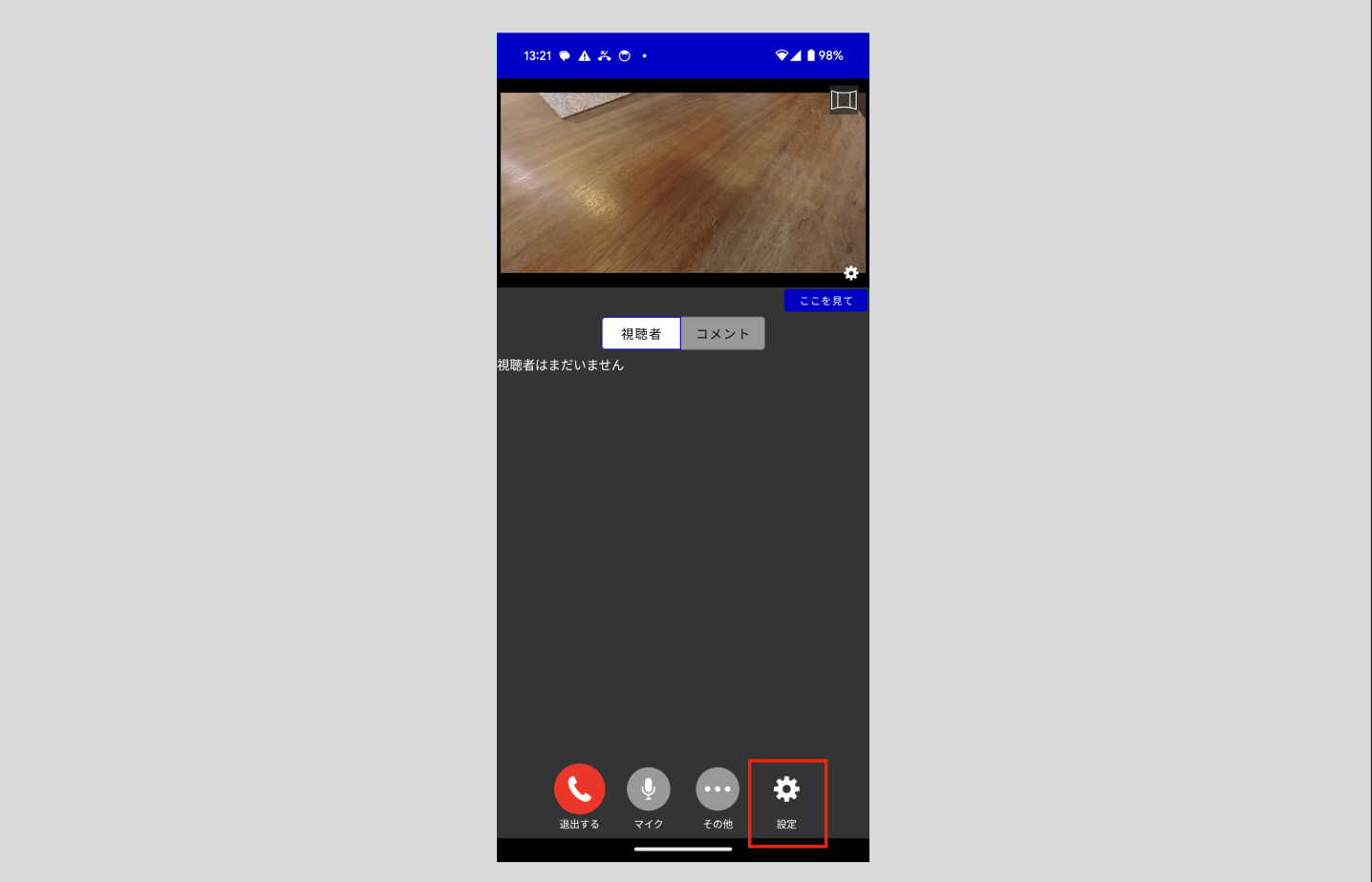 - 配信画面右上の歯車マークを押して設定画面に進む