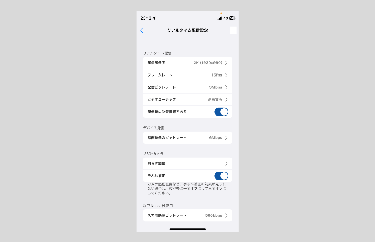 画質が粗い場合や遅延がある場合は、ビットレートを上げてください。