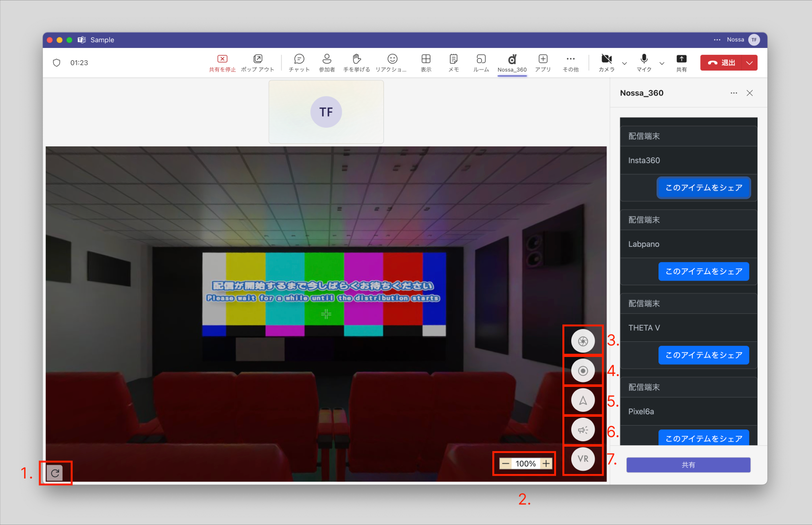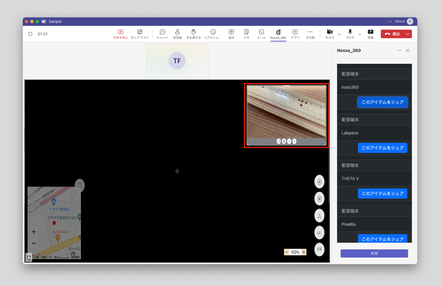 アイテム(リアルタイム配信映像等)の共有開始後