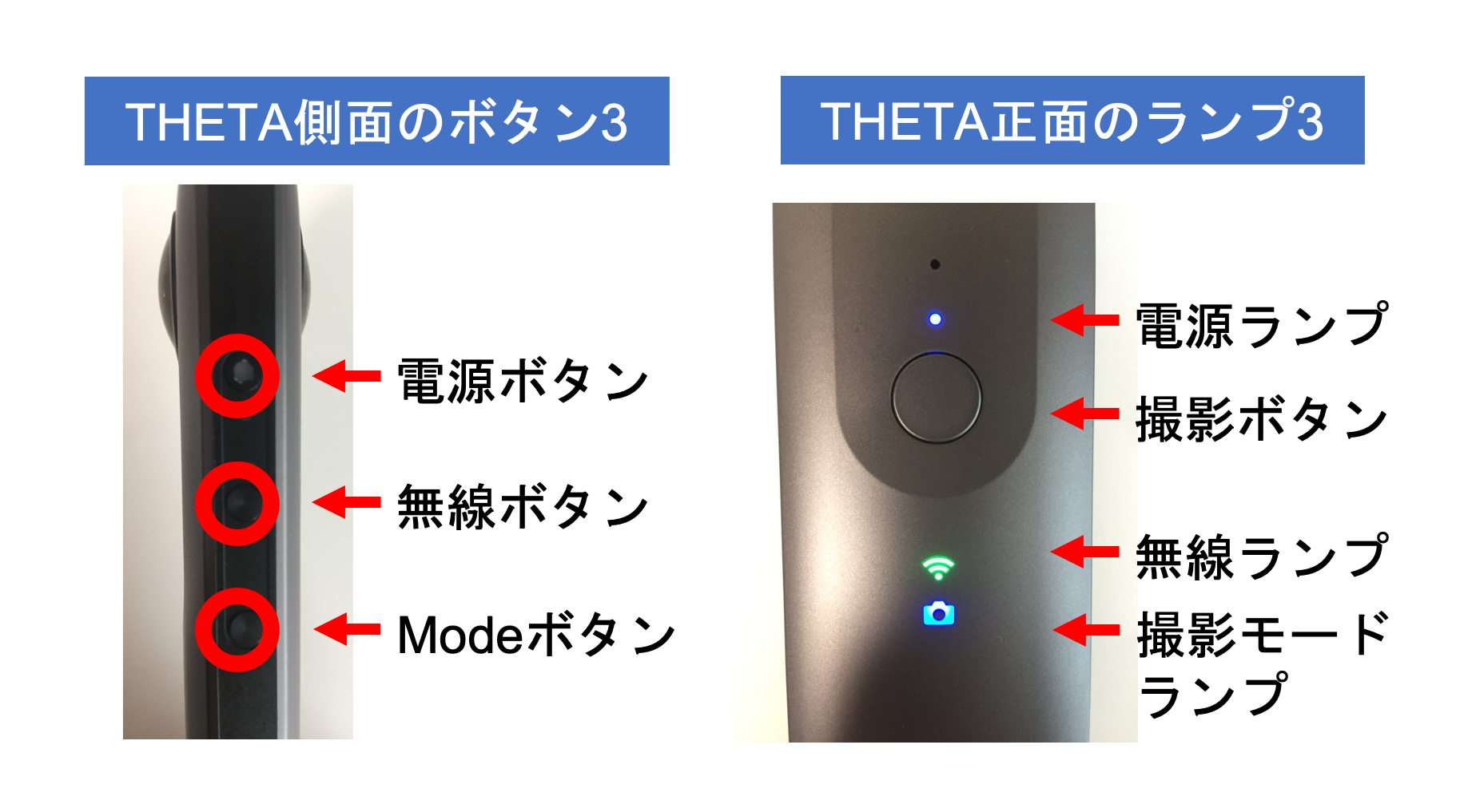 - 長押しせずに普通に押すだけだと、THETAがスリープ状態になる(もう一度押すと復帰)