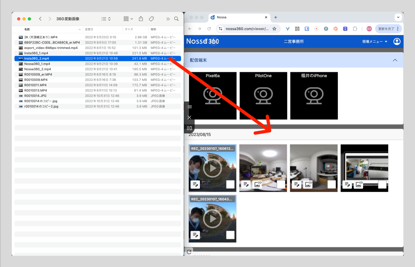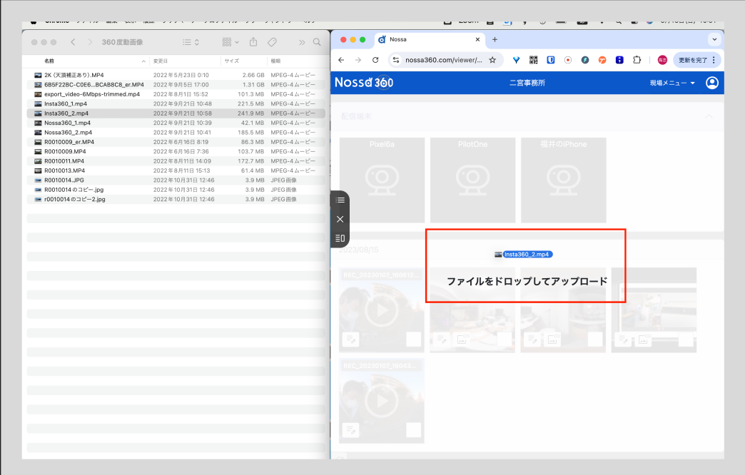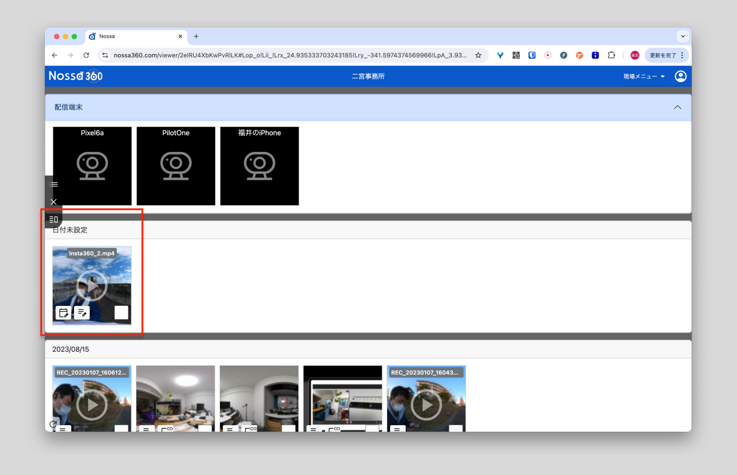 Nossa360スマホアプリを用いて、Insta360に挿入されたSDカード内の動画をアップロードする方法は、以下をご参照ください(iOS版のみ対応)。
