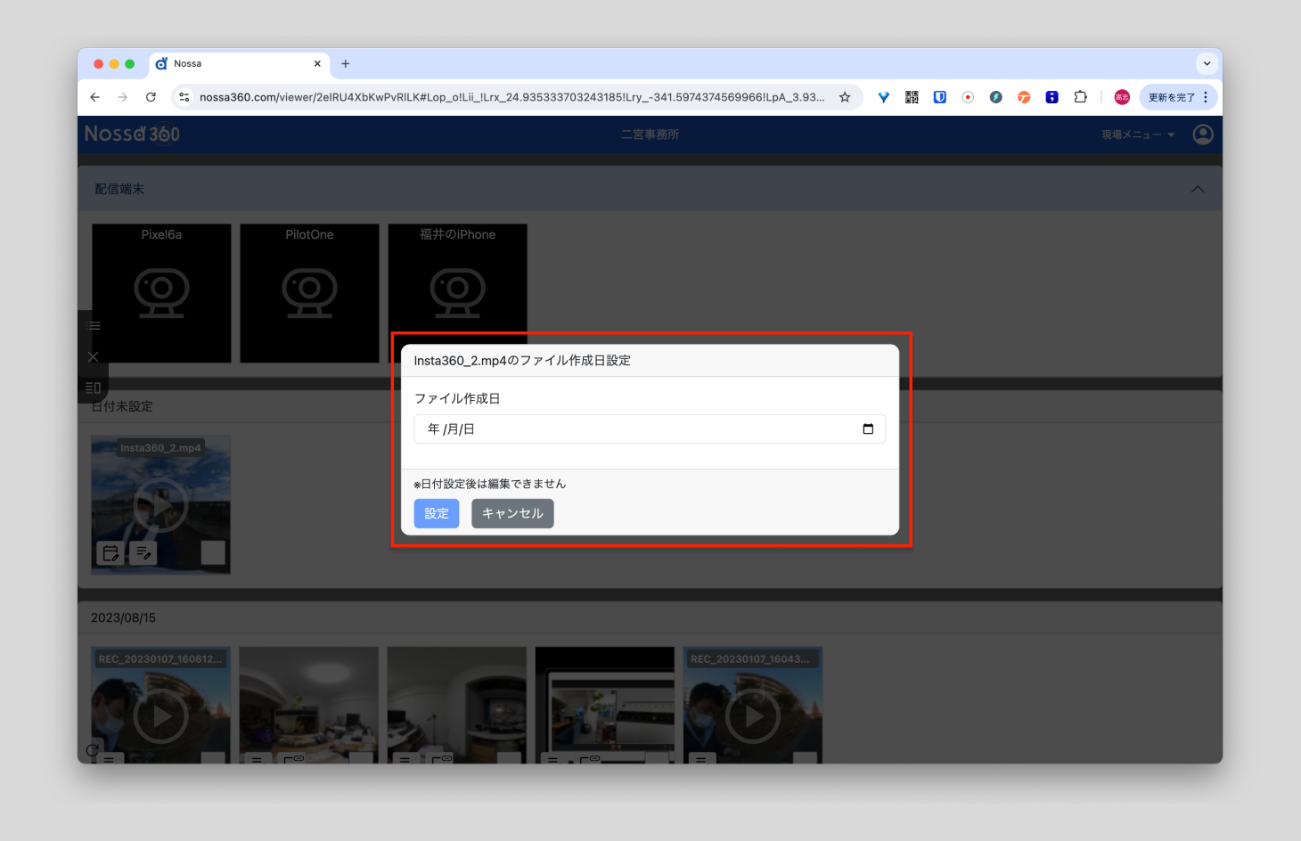 画像については、ファイル情報から日付が自動で取得されますが、動画については手動で設定する必要があります。