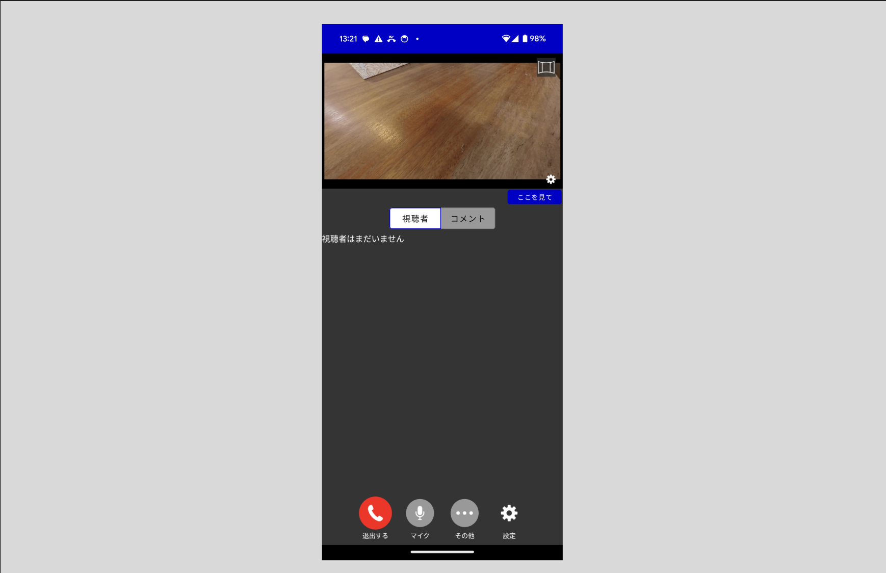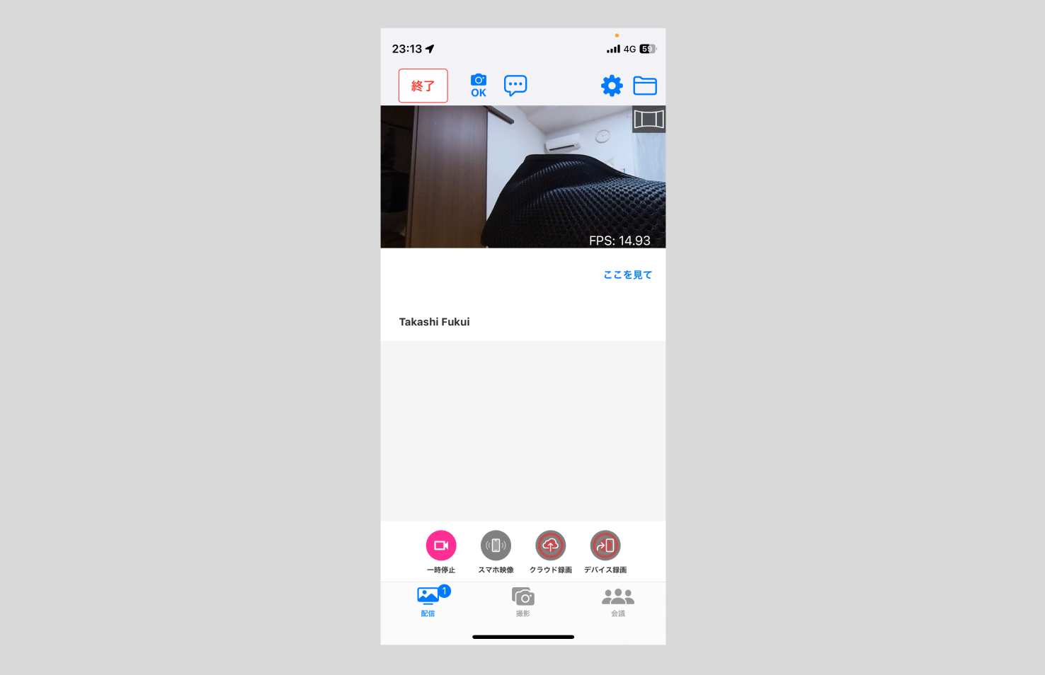 - 以下の画面は、リアルタイム配信を開始できた状態