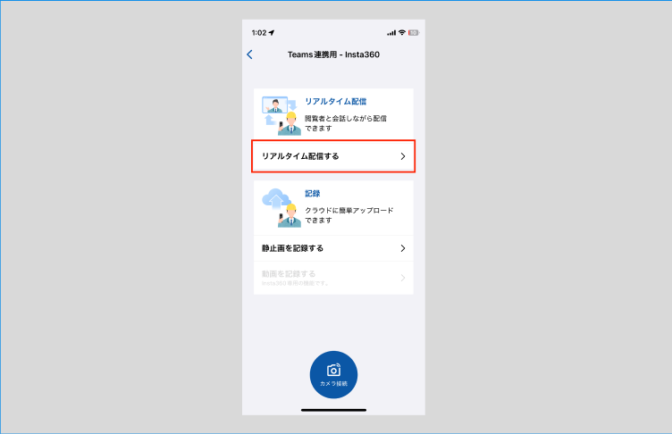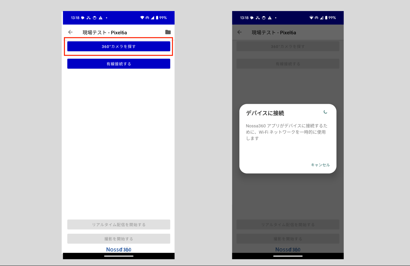 (2) [360度カメラを探す]を押す → 周りにある電源の入ったカメラを探し始める