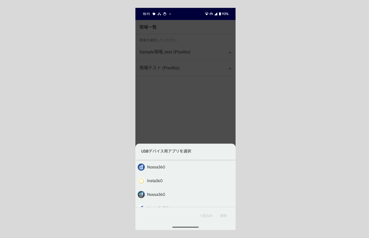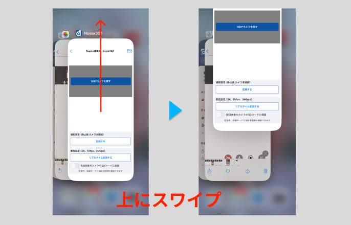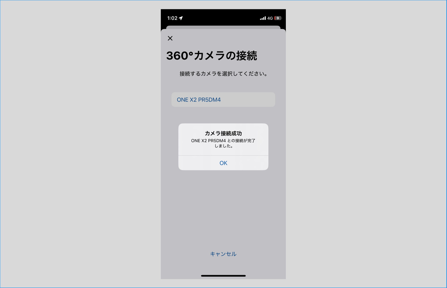 上記のように、どのアプリを利用するか、が出てこない場合は、360度カメラとスマートフォンを接続できていない可能性が高いです。(利用するアプリをすでに設定済みの場合は、出てこないこともあります)
