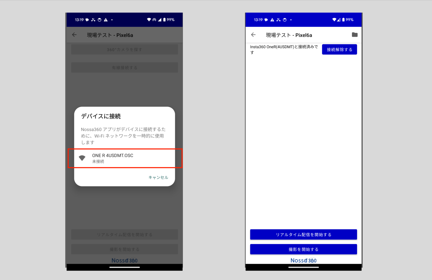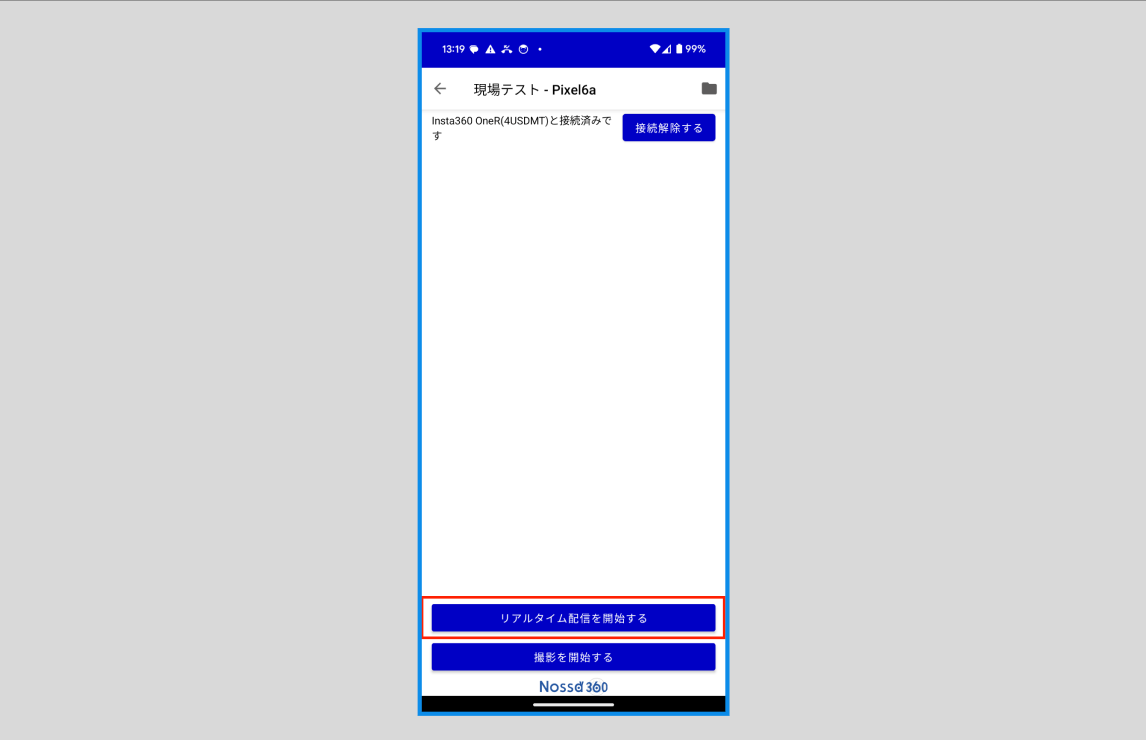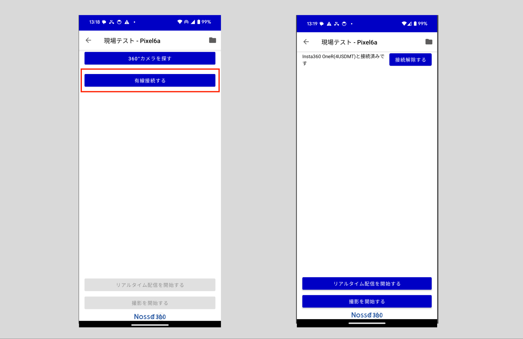(1) 360度カメラの電源をONにし、有線接続時の設定が「Android」になっているか確認する